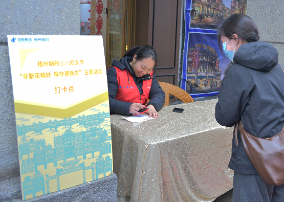 活動現(xiàn)場,女職工們?nèi)宄扇海┧笥隍T樓城的大街小巷,感受百年騎樓的獨(dú)特魅力,探尋隱匿在歷史深處的非遺文化。在“非遺尋韻‘跌打丸’”任務(wù)點(diǎn),大家紛紛駐足,掃碼觀看《“丸”世傳奇》短劇,深入了解中華跌打丸這一非遺瑰寶的歷史與傳承。蓋在主題卡上的“中華”印章,為這場探索之旅增添了濃厚的歷史韻味。